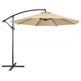 Yaheetech 10FT Patio Offset Umbrella - Cantilever Hanging Outdoor Umbrellas w/UV Protection & 8 Ribs & Handy Crank & Cross Base for Market/Garden/Lawn/Deck/Backyard/Pool - Tan