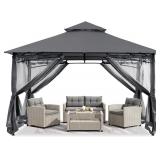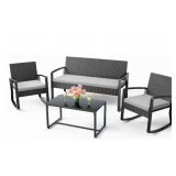 (141) EAST OAK Life Chatter Patio Furniture Set, Outdoor Furniture Corner Sofa Set with Round Coffee Table, 5 Seats Sofa Deep Seating with Thick & Washable Cushions, Earth Black & Misty Grey