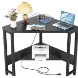 armocity Corner Desk Small Desk with Outlets Corner Table for Small Space, Computer Desk with USB Ports Triangle Desk with Storage for Home Office, Workstation, Living Room, Bedroom, Black
