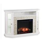 Turn up the coziness with this electric fireplace. The crisp white finish and stacked faux stone effortlessly add character and style to your space, while LED-lit cabinets showcase your favorite treasures and framed memories. An adjustable back panel lets this curio fireplace fit snugly into a corner or against a flat wall for maximum versatility. Switch on the heat during chilly winters for that cozy haven feel, and when the weather warms up, keep the inviting atmosphere going without the heat. Whether you're sprucing up your apartment living room or giving your home office a welcoming feel, this electric fireplace with mantel adds a touch of sophistication to any space.