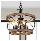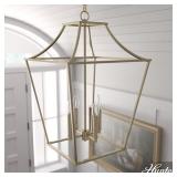 EDISLIVE Ellison Industrial 4-Light Black Lantern Geometric Chandelier with Glass Shade
