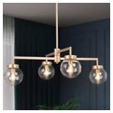 Uolfin Modern Gold Sputnik Bedroom Chandelier, 27.5 in. 4-Light Farmhouse Linear Globe Dining Room Chandeliers Semi flush Mount