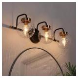 LNC Modern 3-Light Black Vanity Light Brass Wall Light with Raspberry Glass Shade for Bathroom Vanity Mirror and Powder Room