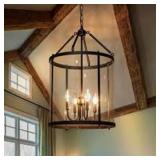 - Industrial lantern design adds rustic charm