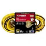 Husky VividFlex 25 ft. 12/3 Heavy Duty Indoor/Outdoor Triple Tap Extension Cord with Lighted Ends, Yellow