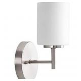 Replay Collection 5-1/4 in. 1-Light Brushed Nickel Etched White Glass Modern Bathroom Vanity Wall Light