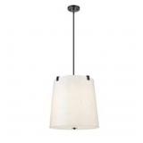 Weston 13 in. 3-Light Matte Black Shaded Pendant Light with Cream Fabric Shade, No Bulbs Included