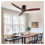 YUHAO Modern Farmhouse 52 in. Low Profile Ceiling Fan with 3 Solid Wood Blades, DC Reversible Motor without Ligh