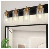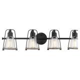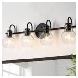 LNC Modern Industrial 28.5 in. 4-Light Black Bath Vanity Light with Clear Globe Glass Shades Powder Room Wall Sconce