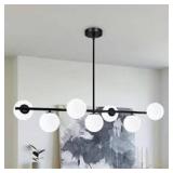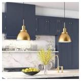 LNC Classic 1-Light Brass Pendant Light Modern Kitchen Island Dining Room Chandelier with Clear Water Wave Glass Globe