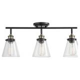 Black wall sconce with clear glass shades features a classic look