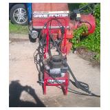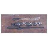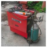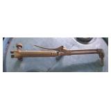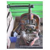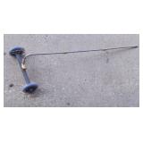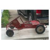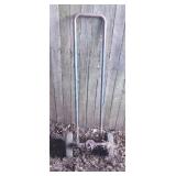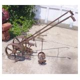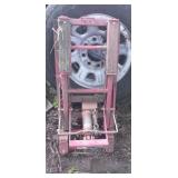 DELECTABLE COLLECTIBLES: Circa 1960’s Murray Super Tot Rod pedal car, Coca Cola Popcorn machine, Anton Briton violin (no bow). Garden windmill, vintage weather-vane, vintage all steel garden cultivator, revolving shop display, dinner bell, humpback trunk, Snap On wood 4 in 1 game, vintage Snap-On die-cast name plates, NIB four-piece Snap-On Drinkware set, new Snap-On T-Shirts (L), Snap-On jacket. Hurd Lock work badge, framed Shirley Temple picture, harmonicas, four ft, cast-iron open-end wrench, antique cast iron screw top for oil can, sword w/sheath, knives, hatchets, sm brass/copper anvil, vintage Continental tire sign {Ed Johnson & Son}, decorative garage signs, vintage Kendall Oil signs, NAPA advertising sign, Auto Value advertising sign, Harley Davidson Cycle sign, large Harley Davidson blanket, vintage Harley Davidson riding cap, Harley Davidson leather jacket & chaps, rare circa 1960’s oil can, circa 1940’s sm red safety gas can, vintage Cities Service grease can, cast iron registers, cast iron skillets, griddle, cast iron 5 qt Dutch oven, Griswold, No. 11 Tite Top w/lid A-2554 (marked Erie, Pa.). Vintage tabletop wheel balancer, Army cot, sleeping bag, duffle bag, Army back pack, and hydration pak, vintage nail puller, (marked General Tire Co. Maumee E. Adrian), early 1900’s Bridgeport Nox Tox nail puller, Nun chucks, Billy club, Avon beer steins, and more.