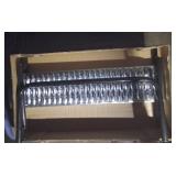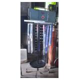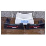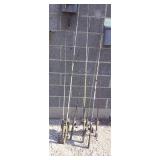 BEST OF THE REST: Hisense chest freezer, wood dining table w/four upholstered chairs, Formica top kitchen table w/four chairs, wood student desk. fishing poles, lures, trolling motors, boat anchors, like new boat oars. Section of iron fence, Lifetime plastic picnic table, folding picnic table, NIB 12 by 12 canopy, EZ-Up 10 by 10 canopy. Mini refrigerator, motorcycle helmets, two antler lamps, Newer Hisense 65” Roku TV, large wire dog crate, megaphone amplifier, Crate guitar amplifier, CB radio w/antenna, one-man BIVY tent, two-man dome tent, Size E car cover, gun safe, metal patio table w/two chairs, Bean Bag Toss game. Old man toilet paper holder, NIB Yada 720P ROADCAM’x, and more.