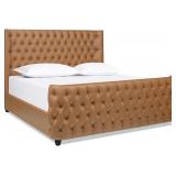 (43) Jennifer Taylor Home Harmonie Upholstered Shelter Headboard Bed Set, King, Caramel Tan Brown Faux Leather