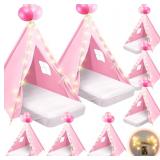 8 Pack Sleepover Tent for Girls Party,Teepee Tent for Kids Slumber Party Bulk with Light String,Air Mattress,Fitted Sheet,Washable Natural Cotton Toddler Teepee for Indoor Outdoor(Pink)