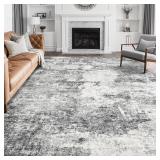Living Room Area Rugs - 8x10 Abstract Large Soft Indoor Washable Rug Neutral Modern Low Pile Carpet for Bedroom Dining Room Farmhouse Home Office - Grey