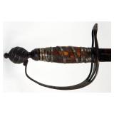 • Historic Sword w/ Metal Basket Hilt and Wooden Grip