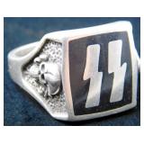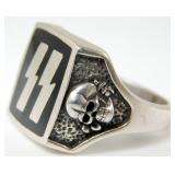• German WWII Waffen SS Officers Runic and Skull Ring