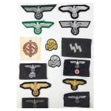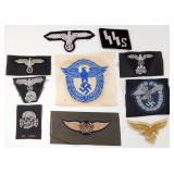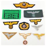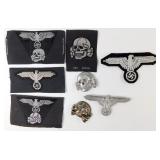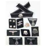 • German WWII Waffen SS Cloth Insignia Grouping of Ten (10)