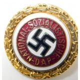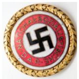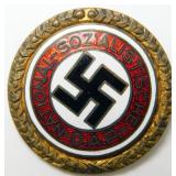 • German WWII Political NSDAP Swastika Golden Party Badge