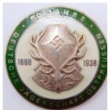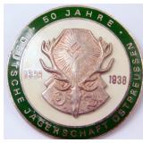 • 50-Year 1888 – 1938 Hunting Deutsche Jagerschaft DJ Badge