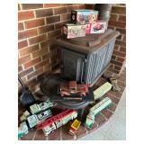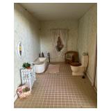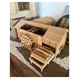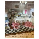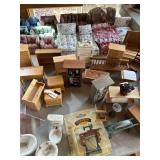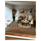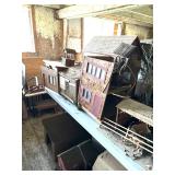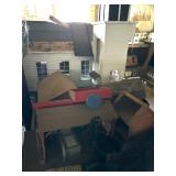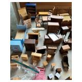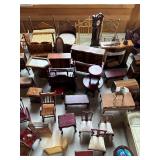 After closing his shop in Wells, he moved the contents his Sanford home. He continued to create magnificent stately homes and dioramas. Here the finished and unfinished lay as he left them. Barber shops, ice cream parlors, barns, stately homes, green houses, gazebos, new and old stock, lighting, electrical connections, stairs, windows, furniture, stoves, appliances, sewing machines, bedroom sets, parlor sets, music rooms, rugs, drapes, mini paintings, miniature people dressed in period clothes and job related outfits of farmer, bakers, butcher, barbers, groom, children, baby’s, adults young and elderly, all in amazing detail. This is an unbelievable collection of a craftsman’s entire life’s work.