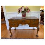 Partial listing of items: Antique English George II walnut/oak highboy, ant. onyx & brass table lamp, ant. Anglo-Irish large crystal bowl, ant. oyster veneer English kneehole desk, Empire octagonal mahogany parlor table c. 1850, ant. William IV Regency music stand c. 1830, nautical china, Robert Irwin inlaid mahogany dresser, Stickley for Colonial Williamsburg mahogany pembroke table, Henredon Duncan Phyfe-style mahogany dining table, 10 Maitland-Smith mahogany dining chairs, mahogany console table, ant. iron & onyx plant stand, Bohemian lidded emerald punch bowl w/ cups, frosted crystal owl, Mottahedeh service plates, Stickley mahogany drum table, English Chippendale kneehole desk, reproduction Constitution mirror, fine oriental rugs, runners & an octagonal, Lenox Country Romance pattern china, nautical china, pr. repro. spiderweb armchairs, Waterford crystal, pink & green Depression Glass, 4-piece Reed & Barton sterling tea & coffee service, silverplate Aesthetic Period coffee urn, Capo di Monte lidded urn, sterling water pitcher & other holloware, Steiff Rose sterling flatware (139 pcs), International sterling “Dawn Rose” flatware (70 pcs), 8 S. Kirk goblets, 8 sterling tumblers, large silverplate punchbowl & underplate & cups, 12 sterling nut dishes, sterling bridal basket, 12 International sterling plates, Simon Pearce crystal Christmas tree, Herend pitcher w/ lizard handle “Black Dynasty”, large ant. Blue Willow platter, Queen Anne-style cherry silver chest, pr. Barraud hunt scene engravings, Zhumell brass telescope, pr. wingback chairs, John Barber print, English mah. Chip-style secretary, demilune cabinet, Lloyd Flanders wicker round table, sofa, 2 rocking chairs, 1 armchair & 2 end tables & ottoman, cedar chest, pr. lacquer armchairs by Hickory Chair, P. Buckley Moss signed print, “To School We Go”, large kitchen table w/ 8 chairs, children’s table & 4 chairs, ant. hanging corner cupboard, crystal chandelier, sconces, small crystal lighting fixtures, Regency-style campaign desk, pr. silverplate candelabra, Eddy West cottage dresser, fine table linens, stemware, white king bed, nightstands & dresser, Franklin Saye prints, 2 Vict. fashion lady’s lithographs and much more! See Facebook or website calendar for photos. Directions: From Kilmarnock, take Bluff Point Road to left onto Prentice Creek Road. Turn right onto Kent Point Road and follow signs to the sale. Please park along Kent Point Road as parking is limited near the house. |