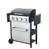 4-burner Propane Gas Bbq Grill, 34200btu Output With Wire Enamel Cooking Grids For Outdoor Barbecue, Foldable Side Table, Hanging Basket, Stainless Steel (Part number: W2938P208373)