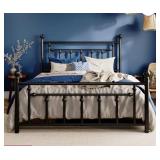Queen Vintage Iron Bed Frame With Elegant Headboard - Sturdy Construction, Spacious Under-Bed Storage, And Easy Assembly