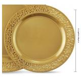 White disposable plates are decorated with gold trim which gives people a noble and romantic feeling. The simple design leaves enough space for food to be displayed. It is also a beautiful scenery. In addition, not only are these gold plastic plates beautiful compliment to you table decor at party, but also the style of the gold party plates, cups, cutlery and napkins will add to any event & tables cape.