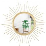 Large Gold Spoked Sunburst Wall Mirror Boho Home Decor Round Wall Art Mirror Modern Metal Mirrors for Wall Living Room Vanity Bathroom Bedroom Hallway Balcony Entryway 20"