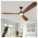 60 Inch Modern Ceiling Fan with Light and Remote, Indoor Outdoor Ceiling Fan with 3 Blades and Reversible DC Motor for Covered Patios, Porch, Farmhouse,Living Room, Bedroom, Kitchen, Walnut