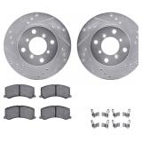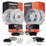 - [Directly Fit]: OE Replacement Drilled and Slotted Disc Brake Rotors and Pads Kit, including Wear Indicator, Mounting Hardware and Brake Lubricant (High-temperature Grease). Please enter your vehicle information in the top left corner of listing and check our "Special Note" before ordering
