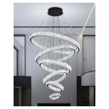 (62) Contemporary Extra Large Black Chandelier Modern 6 Ring LED Crystal Ceiling Light Adjustable Stainless Steel Chandeliers D8+15.7"+23.6"+31.5"+39.4"+47.5"