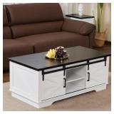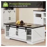 Real Relax 48-inch Farmhouse Coffee Table, Four Sliding Barn Doors, Double Storage Cabinets, Adjustable Shelf Board, Premium Textured Tabletop, Perfect for Living Room, Guest Room, White
