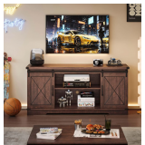 Huloretions Farmhouse Tv Stand for 65 Inches TVs, Entertainment Center with Sliding Barn Doors and Adjustable Shelf, Tv Media Console Table with Storage Cabinet for Living Room, Bedroom