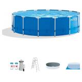 (117) Intex 28241EH Metal Frame Above Ground Swimming Pool Set: 15ft x 48in – Includes 1000 GPH Cartridge Filter Pump – Removable Ladder – Pool Cover – Ground Cloth