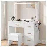 LED Queen Bed Frame with 2 Storage Drawers, Upholstered Bed Frame Queen Size with Headboard and Charging Station, No Box Spring Needed, Easy to Assembly-Dark Grey