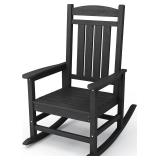 KINGYES Outdoor Rocking Chairs, HDPE All-Weather Patio Rocking Chairs High Back Porch Rocker for Adult, Black