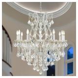 (91) Large Silver Modern Crystal Chandelier Light Fixtures - 12 Lights Pendant Light Foyer Chandelier Fixtures for Staircase Hallway Living Room Entryway