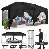 Walsunny 10x20 ft Carport with 4 Sandbags Heavy Duty Car Canopy with Roll-up Windows Portable Garage with Removable Sidewalls & Doors Black