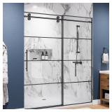 (15) 60" W x 72" H Semi-Frameless Single Sliding Shower Door, 8mm SGCC & ANSI Certified Tempered Glass, Easy-Clean Coating, Reversible Installation, Adjustable Width, Matte Black