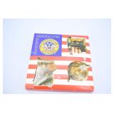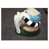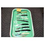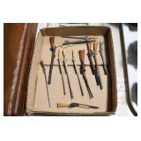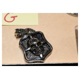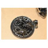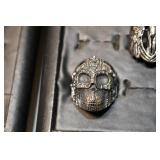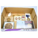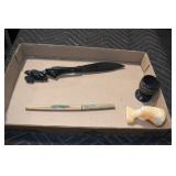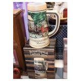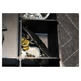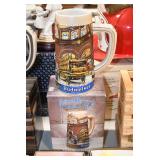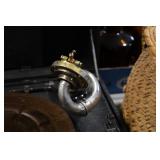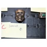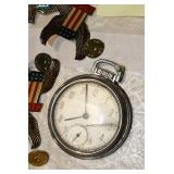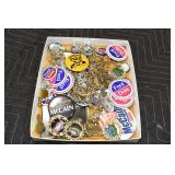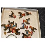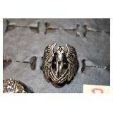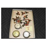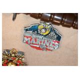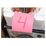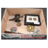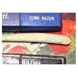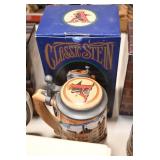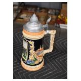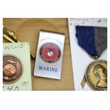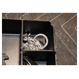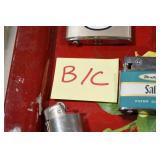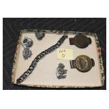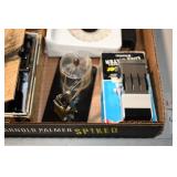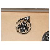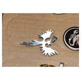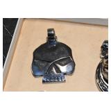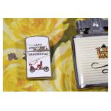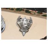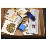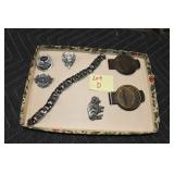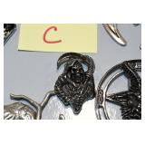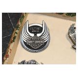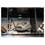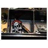 Antiques and Collectibles: 15 Lots of Harley Davidson, Costume, Sterling, and Other Jewelry, 30 Various Belts w/Buckles, 9 Various Style Cookie Jars, Large Amount of Straight Razors, Avon Whale Organizer, Ornate Mantle Clocks, Carved Eagle Figure, Vintage Woven Baskets, Donald Kline Teal Drake Carved Decoy, Railroad and Other Lanterns, Military Soldier Figures, Marine Core Collectibles, Political Pin Back Buttons, Vintage Tools, Binoculars, Carved Wooden Monkeys, Vintage Postcards, Dagger Cane w/Eagle Head, Copper and Brass Items, Barbie Dolls, Miniature Pottery Animals, German Steins, Zippo and Other Lighters, Washburn Steel Guitar, Ibanez Tone Blaster Model TB25R Guitar Amp, Large Poker Set, Comic Books, Weather Vane, Woodworking Planes, Hand Tools, Large Amount of Wooden Nickels, Framed Prints and Pictures, and Other