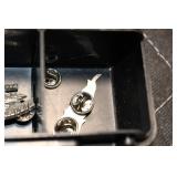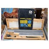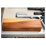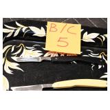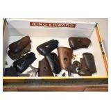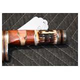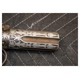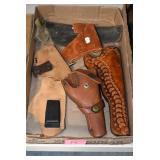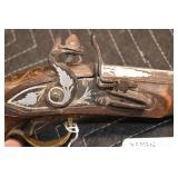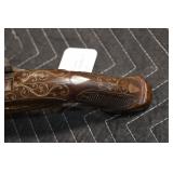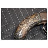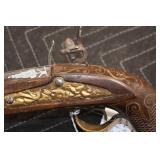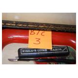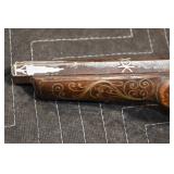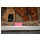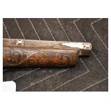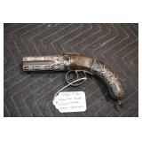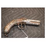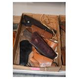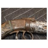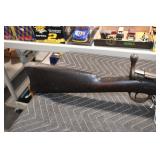 Sporting Related: Yemen 45 Caliber Flintlock Pistol w/Silver and Mother of Pearl Inlays, Yemen 5-Shot Pepper Box w/Silver Inlayed Handle, U.S. Springfield Armory Ward Burton Model 1871 50-70 Caliber Rifle, Spanish 36 Caliber Black Powder Percussion Muzzleloader, Louis Adam Muzzleloading Percussion Shotgun, Large Amount of Folding, Pen, and Sheath Knives, Knife Sets, Novelty Knives, Ammunition, Shotgun Shells, Leather Holsters and Leather Holster Rigs, Gun Cases, Cleaning Rods, Gun Cases, Gun Parts, Bore Gauge, Airsoft Guns, and Other