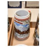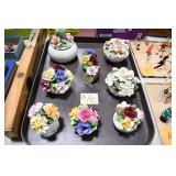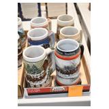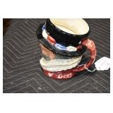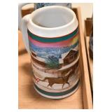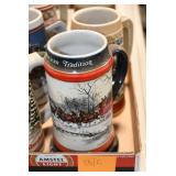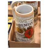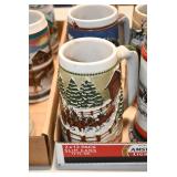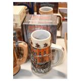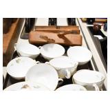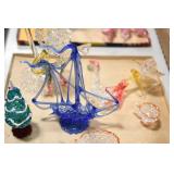 Antique Glassware: Large Amount Belleek Tridanca Glassware, Glass Paper Weights, Glass Houses, 11 Royal Doulton Mugs, Wild Turkey Whisky Decanter, Vintage Glass Bottles, China Sets, Decorative Glass Vases, Glass Figures, Foral Glass Compotes, and Other