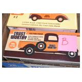 Collectible Toys and Trains: German Ueha T-34 M1-43 Metal Tank Toy, Miniature Toy Cars and Trucks, Matchbox Cars, Vintage Antique Toy Cars, Miniature Construction Toys, John Deere Toys, NASCAR Toy Cars, Winross Trucks, Vintage Metal Toys, Truck Banks, Toy Tractor Trailers, Miniature Pedal Airplane, Hot Wheels, Star Wars Toy, Thomas Trains, Train Engines, Tenders, Cars, Track, Transformer, and Other