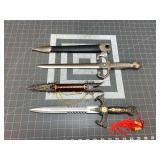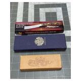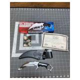 41799 Vintage Coca-Cola Advertising Clock, Bubble Glass (similar to PAM) 41800 Honshu Spartan Blade With Leather Sheath 41801 Western Bowie Knife with Sheath 41802 Colt Bowie Knife with Sheath 41803 American Mint Trump Bowie Knife 41804 American Mint Trump Bowie Knife 41805 Gil Hibben Recurve Karambit Knife, with Sheath 41806 Damascus Blade Knife and Hunting Knife with Sheath 41807 2 American Eagle Knives, Defender Hunting Knife with Sheath 41808 Gil Hibben's Karambit Knife with Sheath 41809 Gil Hibben's Legionnaire Knife with Sheath 41810 Generals of the Confederacy Bowie Knife 41811 Generals of the Confederacy Bowie Knife 41812 Generals of the Confederacy Bowie Knife 41813 Generals of the Confederacy Bowie Knife 41814 Hibben III Fighter Bowie Knife with Sheath 41815 Timber Rattler Bowie Knife with Sheath 41816 Smith & Wesson Texas Hold 'Em Bowie Knife with Sheath 41817 Gil Hibben 50th Anniversary Knife with Sheath and Wall Mount, 2007 Autographed Edition 41818 Timber Wolf Hunting Knife and Boot Knife, with Sheaths 41819 Short Sword with Sheath 41820 Gil Hibben Karambit with Sheath 41821 Gil Hibben Alaskan Boot Knife with Sheath 41822 Set of Colt Black Beauty Knives with Sheath 41823 Gil Hibben Karambit with Sheath 41824 Boot Knife and Chipaway Cutlery Hunting Knife 41825 2 Stauer Pocket Knives 41826 3 Knives, Tomahawk and Sgian Dubh Co. 41827 Gil Hibben Bowie Knife 41828 Gil Hibben Single Shadow Dagger with Sheath 41829 Big Game Hunting Knives Pocket Knife, White Tail Deer 41830 Knife, American Civil War Pocket Knife Collection 41831 Set of 2 Schrade Old Timer Knives 41832 Bobcat Knives Hunting Knife with Sheath 41833 A.G. Russell Hunting Knife with Sheath 41834 Magnum Hunting Knife with Sheath 41835 Browning Boot Knife with Sheath 41836 Medieval Style Long Sword 41837 Set of 3 Schrade Old Timer Knives in Tin 41838 Gil Hibben Double Shadow Dagger with Sheath 41839 Zachary Crockett Hunting Knife and Mini Sword 41840 2 Boot Knives, One Marked Fury 41841 3 Pocket Knives 41842 2 Mini Swords 41843 2 Chipaway Knives, Bonnie with Bone Handle 41844 Bowie Knife with Sheath 41845 Bowie Knife with Sheath 41846 Set of 2 Schrade Old Timer Knives in Tin 41847 Damascus Blade Knife and Hunting Knife with Sheath 41848 Hibben Collaboration Legacy III Fighter Knife with Sheath 41849 Mother of Pearl Dagger, Pocket Knife, Crane's Gold Folding Razor 41850 Bowie Knife, Boot Knife, MTech Pocket Knife 41851 A. G. Russell Pocket Knife 41852 Trench Knife, Eagle Themed Pocket and Boot Knife 41853 Made in Pakistan Knives, Boot Knives, Elk Ridge 41854 Bowie Knife with Sheath 41855 Karambit Knife, Pocket Knife, Sgian Dubh Co. Boot Knife 41856 White Tail Cutlery Hunting Knife, Fury Filet Knife 41857 2 Pocket Knives, Nedfoss and Garrett Wade 41858 Hunting Knives, Elk Ridge and Timber Rattler 41859 Hunting Knives, Stauer and Roper 41860 Knights Templer Style Sword on Plaque Marked Covenant Partner 41861 Gill Hibben 2010 Gold Edition Sword, The Valiant, 754 of 900 41862 Tipton Gun Repair Stand 41863 Metal Locomotive and 2 Boat Models 41864 Pyrex Glass Medical Sterilizer Bowl with Enamel Tray 41865 Wood Tote Box with Bent Twig Handle and Reproduction RR Bowl 41866 Grape Crusher 41867 Birch Bark Box 41868 Oak Barrel Keg with Spout 41869 19th C. Seymour and Hall Shelf Clock (tall at 33") 41870 2 Vintage Hallway Chandeliers with Etched Glass 41871 Harry Potter Book Set (unread, sealed plastic) 41872 Harry Potter's Owl and other Items 41873 Harry Potter Posters 41874 Antique Photo of Smitty Bros Gulf Gas Station and Guns 41875 John Deere Tractor and Cultivator Toys 41876 John Deere Tractor Toys including Ertl 41877 Fiesta Dishes 41878 Pair of 7" Herend Blue Flower Porcelain Candlesticks 41879 34" Bob Dylan and Tom Petty 1987 European Tour Poster (poster board) 41880 KitchenAid Mixer (ultra power motor) 41881 Vintage Chandelier with Milk Glass Shades 41882 Group of Antique Wall Sconce Lights 41883 Lionel Beacon Light and Whistle Station (tested ok) 41884 2 Model Railroad Signal Tower Lights 41885 American Flyer Model Train Cars 41886 Marx Model Train Cars 41887 Modern Lionel Cars 41888 Post-War Lionel Cars 41889 6" Art Deco Amphora Vase 41890 8" Amphora Vase 41891 14" Art Nouveau Ceramic Vase from Vienna Austria 41892 13" Decorated Terracotta Pitcher (hairline on handle, don't grab from there) 41893 38" Victorian Opaline Glass Parlor Lamp 41894 Pair of Ship's Candlestick Wall Sconces, Copper and Brass, project out 24" from wall 41895 Starrett Calipers and Machinist's Clamps 41896 2 Bent Wood Container Boxes 41897 Sifter and a Cast Lamb Mold 41898 Rogers Bros Plated Coffee Set 41899 Ratchets (including Craftsman) 41900 11" Nippon Vase 41901 Mixed Books, some are Early, plus Scribner's Wood Box 41902 Antique Banjo 41903 Wood Sled 41904 Wood Sled 41905 Nettle Creek Masthead (molded foam) 41906 Art Glass Bowl, 15" Diameter. Lavorzione, Arte Murano 41907 2 Pieces of Art Glass. (yellow and green, possibly Blenko) 41908 2 Amethyst Glass Pitchers. 1 is Fenton, other is handblown 41909 2 Kerosene Jugs for Perfection Stoves 41910 Pop Bottles in Blue Enamel Pot 41911 Primitives. Wash Board, Toaster, Skirt Maker, Printer's Tray 41912 Glass and Ceramic Insulators 41913 Red Glass Globes and Oilers 41914 2 Art Glass Vases. Jack in the Pulpet and Fan Vase 41915 3 Pieces of Art Glass 41916 EAPG Pitcher, Mid Century Bowl, Ceramic Vase 41917 Clear and Pink Glass Perfume Sprayers 41918 Vanity Tray with Perfumes (clear with chipped stopper) 41919 Lantern plus other Items 41920 Mixed Tools 41921 Adjustable Wrenches 41922 2 Extension Cords 41923 Dewalt Variable Speed Jigsaw (tested ok) 41924 Metabo Stapler and Laser Levels (none tested) 41925 Electric Grill 41926 Lionel Post War Train Cars 41927 Lionel Post War Train Carbooses 41928 Modern Lionel Cars 41929 Modern American Flyer Cars 41930 Modern American Flyer Cars 41931 Size 14 Wilson Softball Glove, Soccer and Volley Balls 41932 Knives in Fitted Display Case 41933 Hand Planes including Wincheste