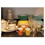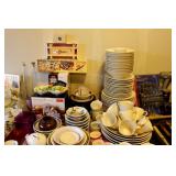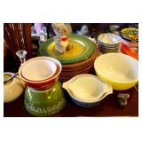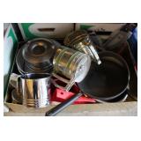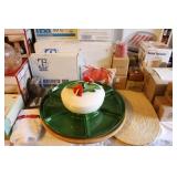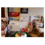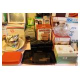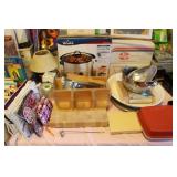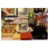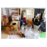 Kitchen Items: Vitamix (new in box) Microwave Bacon/Meat Rack Braun Pureer Rival Crock Pot (in box) John Wright Cast Iron Cookie Mold Pasta Queen Noodle Making Machine in Box Mirro Cooky & Pastry Press in box Cuisinart Mini Prep Food Processor in box Sunbeam 3 cup Rice Cooker in box Temptations Presentable Ovenware set by Tara Progressive Stainless Steel Fish Poacher in box Circulon Whistling Tea Kettle (in box) Serving Items Cuisinart DLC-8 plus Food Processor Mirror Tray Circulon Wok Large Stock Pot Kitchenware Items Pottery Barn Plates Le Souk Bowls Air Pots Vintage Pyrex Bowls Chrome Bakers Racks Spiral Vegetable Slicer