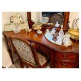 This is like an ANTIQUE MUSEUM! Literally a one-of-a-kind sale here! Many items date back from the 1800's, and all of the furniture is in incredible shape! Dont miss out! For behind the scenes & upcoming sales follow our socials! Facebook.com/lorisestatesales Instagram - @Loris_Estate Tik tok- @Lorisestatesales 💚Uranium Glass: Vintage Anchor Hocking Princess Uranium Glasses, Uranium Princess Plates, Princess Princess Tea Cup & Saucers, Uranium Princess Cream & Sugar Set, Uranium Ruffled Dish, Uranium Goblet, Uranium Juicer, Uranium Measuring Cup, Uranium Federal Tea Cup & Saucer, Uranium Anchor Hocking Shaker, Uranium Anchor Hocking Salt & Pepper Shakers, Uranium Federal Sherbet Glasses, Uranium Federal Swirl Sherbet Glasses, Uranium Cub Sherbet Glass w/ Saucer, Uranium Candlestick Holders, Vintage Uranium Vaseline Tray, Jeanette Doric Goblet, Vintage Fenton Vaseline Uranium Glass Basket, Vaseline Uranium Barber Bottle, Vintage Fenton Hobnail Vaseline Uranium Cream & Sugar Set, Vintage Hobnail Fenton Vaseline Uranium Vase, Vintage Fenton LG Wright Vaseline Uranium Goblets, Vintage Vaseline Uranium Glass Candlestick, Davidson Primrose Compote Vaseline Uranium Glass, Summit Vaseline Uranium Glass Lion Paperweight 🍷China & Glassware: Vintage Johann Haviland Bavaria Fine China, Vintage 1940s Japanese Dragonware Moriage Tea Set, Vintage Mary Gregory 8” Kobalt Blue Carafe & Tumbler Night Set, Vintage Tirschenreuth Bavaria China Tea Set, Neiman Marcus Gold Tea cup & saucer set, Rosenthal Selb-Plossberg China plates, Heisey Rose etched plate set, Numerous set of Heisey Rose etches glasses, Provincial Designs by Nikko China Set, dozens upon dozens of Blue Willow styled plates & bowls, Dozens of Vintage decorative painted plates by Knowles, Hummels & others. 💕Pink Depression Glass: Anchor Hocking Oval dishes, Serving plates, Vintage Grill plates, Vintage Berry Bowls, Fountain Soda glass, Anchor Hocking Biscuit Jar, Fenton Hobnail Candy dish, Vintage etched cranberry vase, Fenton Cranberry opalescent Hobnail bowl, Fenton Opalescent Hobnail Pitcher & 6 Glasses, Vintage Shot glasses, Fenton Hobnail Boot with lid, Vintage Bin Bon server, Anchor Hocking lace bowl, Indiana Glass pedestal dish, Indiana Glass sugar & creamer cups, Vintage depression jar, Vintage Fenton cranberry vases, Indiana Glass Madrid Pattern tea cups & saucers, Vintage American sweetheart teacup, Vintage Indiana glass plates, and TONS more! Miscellaneous Collectible Glass: Amber collectors glass, Vintage deer marigold depression carnival trinket, Vintage amber hand painted bohemian decanter w/ 6 shot glasses, Vintage marigold carnival glass goblets, candle stick holders, & butter dish, Vintage Jeanette carnival glass, Vintagefire king lustre tea cup & saucers set Blue collectors glass, Vintage Fenton baby blue hobnail cruet, Vintage Fenton art glass bell, Fenton baby blue ruffled rim basket & bowl Fenton baby blue boot, Vintage opalescent barber bottle, Fenton cream blue vase, Vtg northwood blue carnival butter dish, Bill Fenton signed mulberry ruffled vase, Vintage amethyst, Vintage Fenton rose crest milk glass bowls, Vintage ruffled milk glass dish and more! 💎Crystal Glassware: Waterford, Waterford & more Waterford! Glandore canister jars, clocks, lamps, candle holders & more! Crystal D’Arques decanters, Vtg hurricane globe, monument Bohemia apothecary jar, Tiffany & Co ruffled vases, tables full of stunning cut glass crystal pieces, Shannon crystal lead canister, Vtg towle pinstar pedestal & so much more! If you love crystal… DON’T miss this one! Wall mirrors: Great selection of mirrors here! Some including Vintage mid-century triple oval mirror, Antique etched panel Buffett Mirror, Multiple gorgeous ornate Gold framed mirrors! Antique swing arm brass wall oil lamp along with dozens of other oil lamps! 🖼️🖼️If you love vtg/antique gold ornate picture frames…. Don’t miss this one! We have over our walls full of stunning frames & some with timeless Victorian artwork! French Victorian framed cameos 🛋️ 🪑 Furniture: This incredible sale is PACKED with some of the best Antique furniture we’ve seen! Many in pristine condition. Most of the pieces had Doilies & glass on the to help protect them! We have an Antique Chest of Drawers along with a matching Art Deco style Vanity, A Full size 4 poster Antique bed frame (Mattress included), Vintage Lane Cedar Chest with cushioned top, Art Deco Night Stand, Tall slender curio cabinet, Vintage curved curio cabinet, Antique Buffett, antique curio cabinet, Vintage China hutch, Antique mother of pearl velvet accent chair, Antique oriental curious cabinet, Antique kidney shaped dry bar, Antique mahogany tripod tea table, Antique dining table w/ 6 chairs & leaf, Vintage floral gossip bench, Antique oriental dragon carved marble top console table, Antique chest of drawers, Antique art deco vanity, Entertainment center, Vtg marble pedestal, Antique Louis XV vanity bench, Antique spinet desk, Italian inlaid musical table, Victorian-style armless chairs, Antique pink kimball Victorian chairs, French Victorian burgundy velvet sofa, Antique Victorian carved sofa ,Antique traditional end tables ,French carved coffee table, carved ornate inlay coffee table, Vtg traditional side table w/ claw feet ,Traditional wardrobe/ armoire & more! Trinket Boxes: Many Trinket Boxes from many different countries! We have numerous Limoges trinket boxes from France, Vintage Schmidt trinket box from Brazil, Vintage Nippon trinket box, Antique M&Z Austria powder/trinket box, and many others! We have a huge selection of Antique & Vintage porcelain items, Many include Candle holders, Vases, Potpourri trinket, Limoges from France items, and dozens of figurines! Filigree: We have very large selection of filigree pieces here! Including flower buds, lighters, hand mirrors, vanity sets, trinket dishes, coaster holder, perfume holders, Vtg perfume bottles, glass box trinkets boxes, waste basket