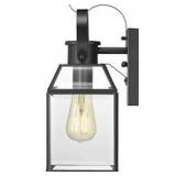 Hampton Bay Alexandria 17.3 in. 1-Light Farmhouse Matte Black Motion Sensing, Dusk-to-Dawn, Outdoor Wall Light Lantern Sconce